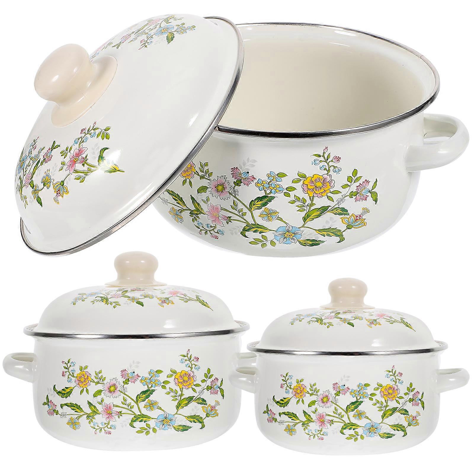 3pcs Cooking Pots Set Stock Pots Flat Bottom Stockpot Enamel Cooking Pot Soup Pot