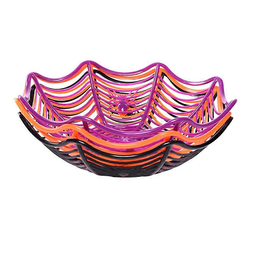 3pcs Creative Plastic Spider Web Fruits Candy Basket Spiderweb Bowl Halloween Party Decor (Random Color)