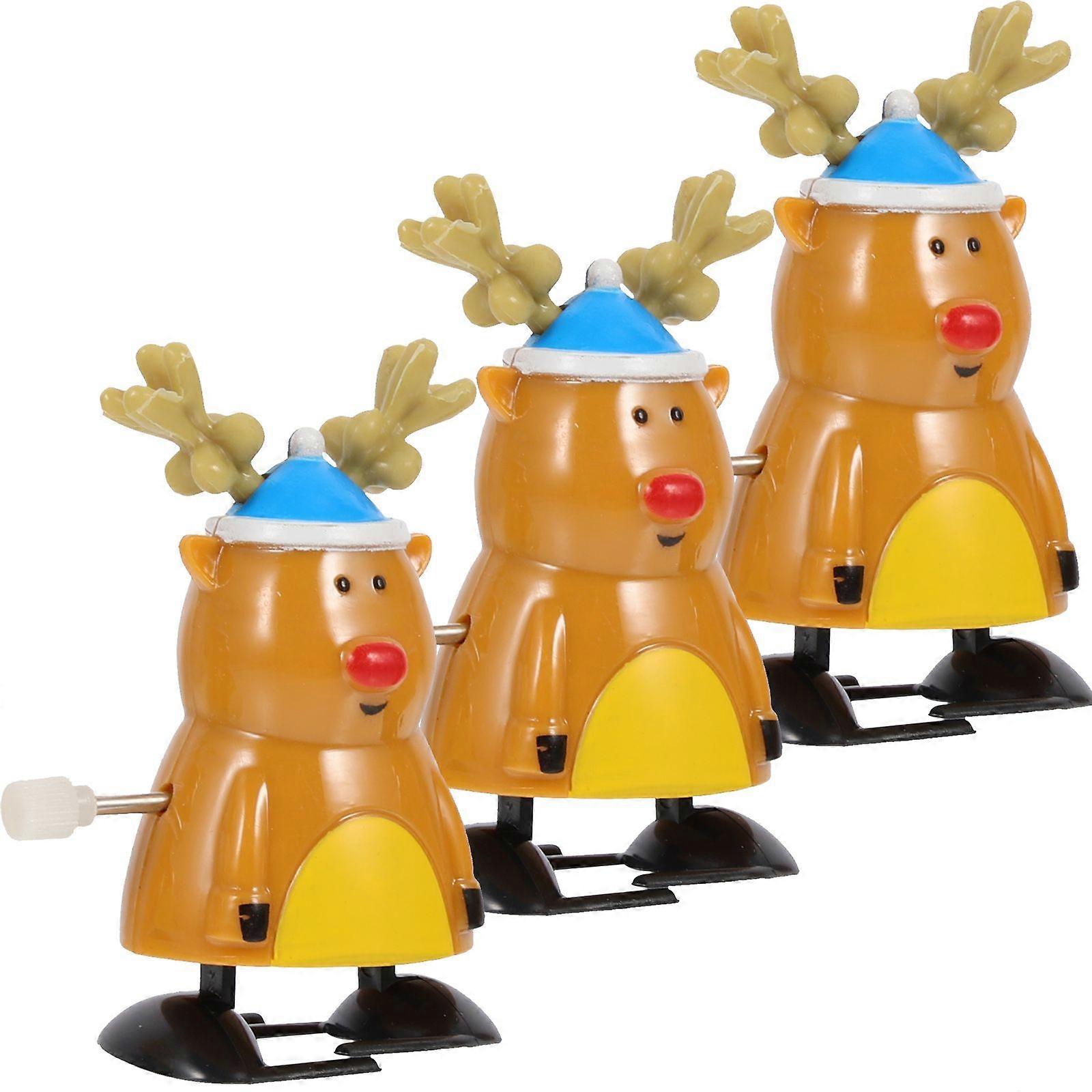 3pcs Christmas Elk Shape Wind-up Toys Xmas Clockwork Playthings Xmas Gift Party Favors