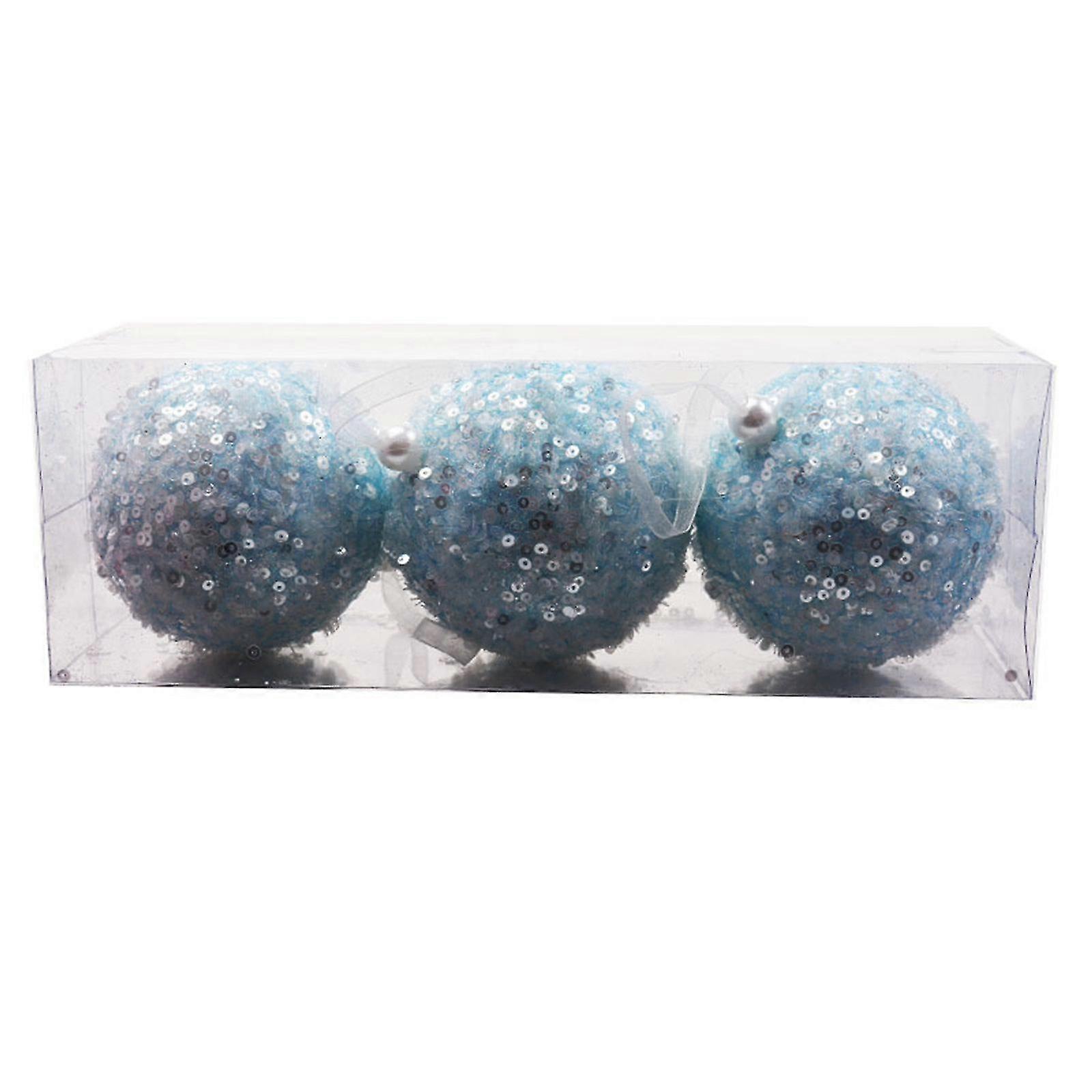 3pcs Christmas Pearl Sequins Glitter Baubles Ball Tree Ornament Decoration 8cm