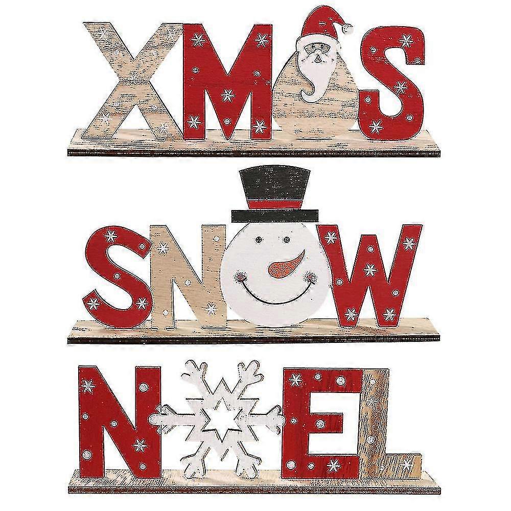 3pcs Christmas Wooden Ornaments Christmas Letters Noel Snowflake Wood Sing Table Decoration For Home Party