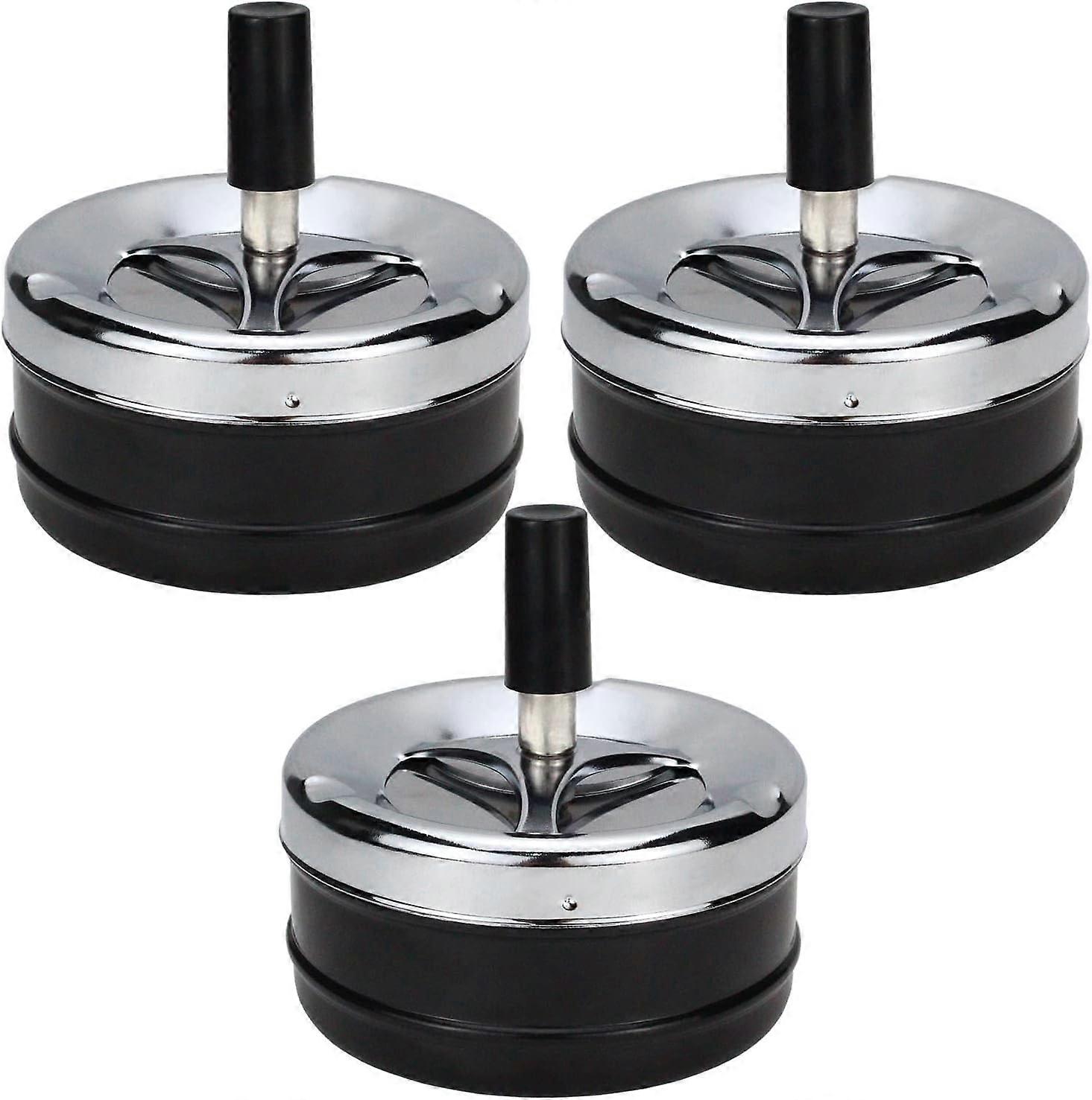 3PCS Chrome Swivel Ashtray - Revolving Windproof Ashtray for Indoor and Outdoor Modern Black