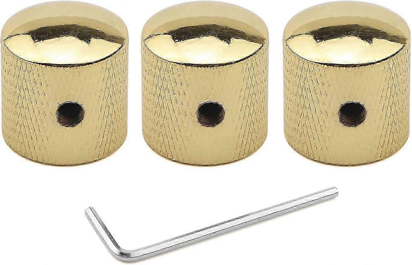 3PCS Gold Metal Dome Volume Tone Control Knobs Knurled Shaft Pots Knobs with Keys Screws Set for Electric Guitar or Bass--