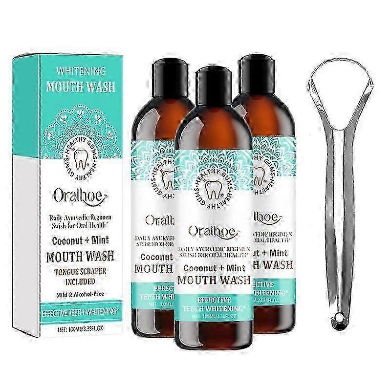3PcsCoconut Mint Pulling Oil Mouthwash Alcohol-free Teeth Whitening Fresh Oral Breath Tongue Scraper Set Mouth Health Care