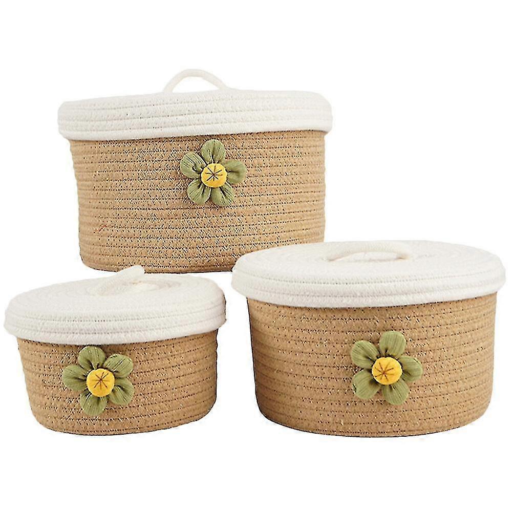 3pcs Cotton Rope Woven Basket - Desktop Storage Organizer, Lidded Sundries Baskets
