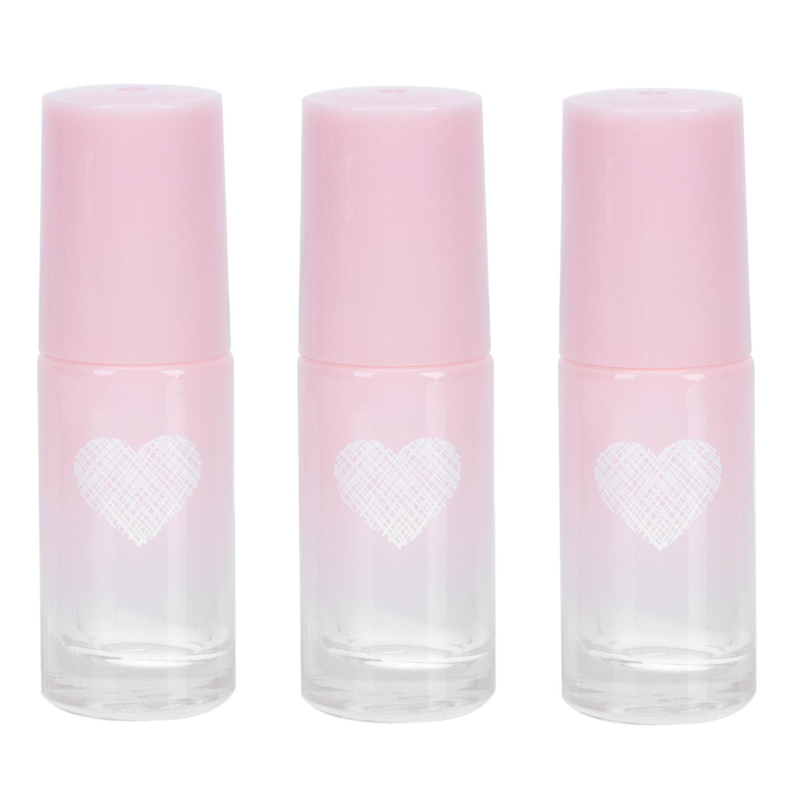3Pcs Jewel Ball Bearing Perfume Bottles Heart Shape For Women Travel Use Airtight Pink Color