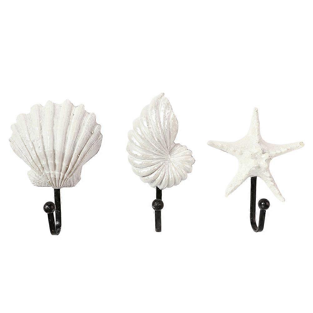 3pcs Sea Star Seashell Conch Hooks Decorative Wall Hooks for Hanging Clothes Towels Coats