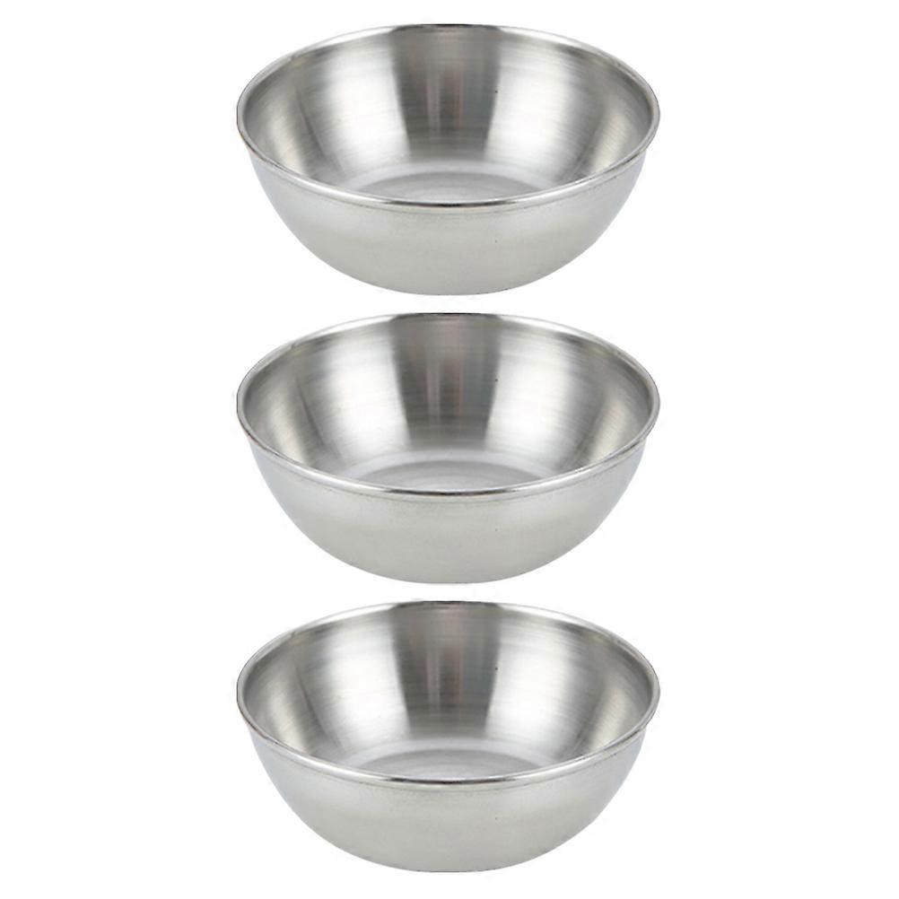 3pcs Stainless Steel Sauce Dishes Food Dipping Bowls Round Seasoning Dish Saucer Appetizer Plates for Restaurant Home (Silver)