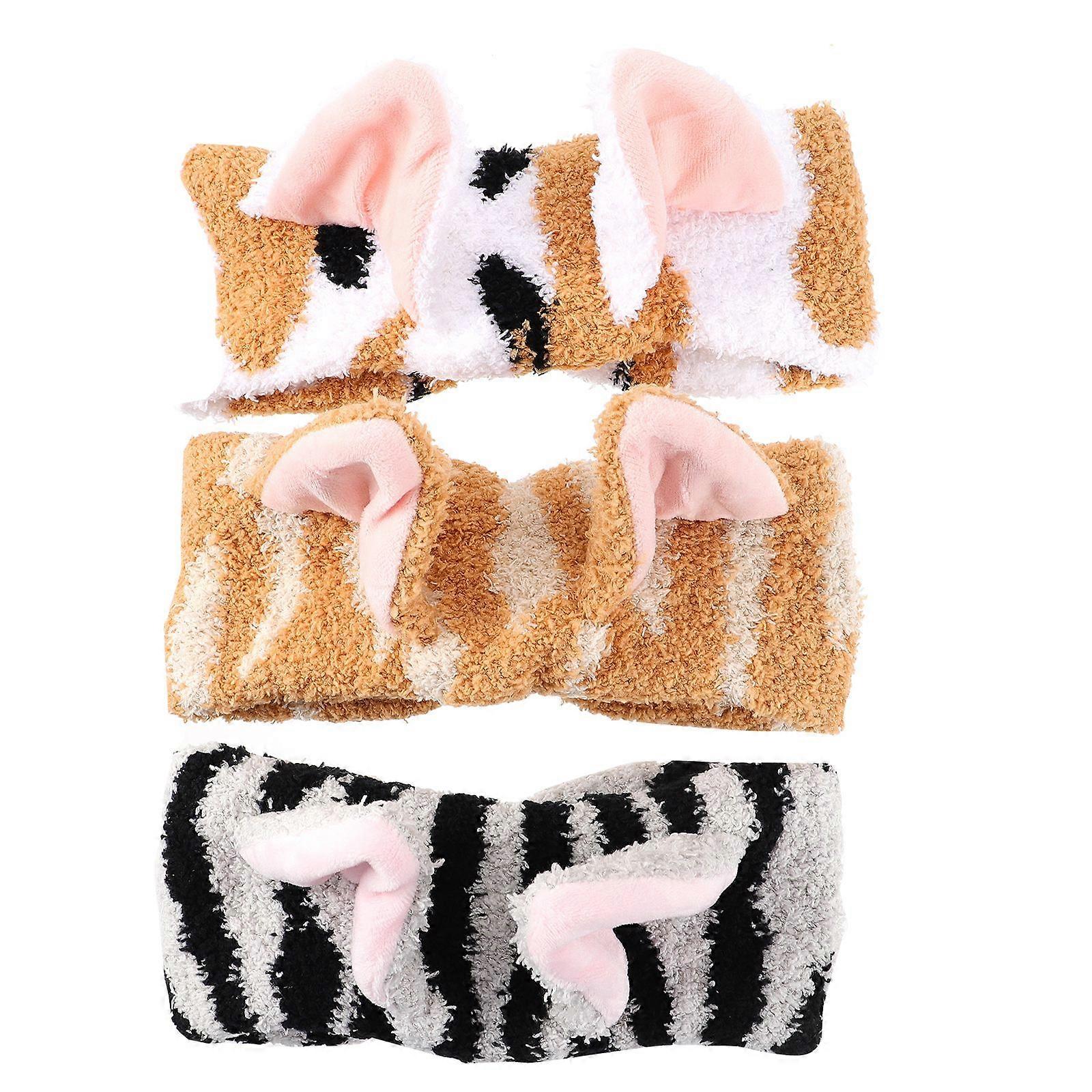 3pcs Spa Facial Headbands Cloth Towels Headbands Cat Ear Makeup Wash Hairband