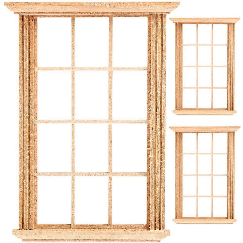 3pcs Tiny House Window Frames Miniature Windows Mini Furniture for Doll House(1:12 Scale)