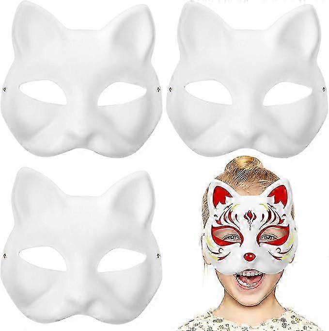 3pcs Therian Masks White Cat Masks Blank Diy Halloween Mask Animal