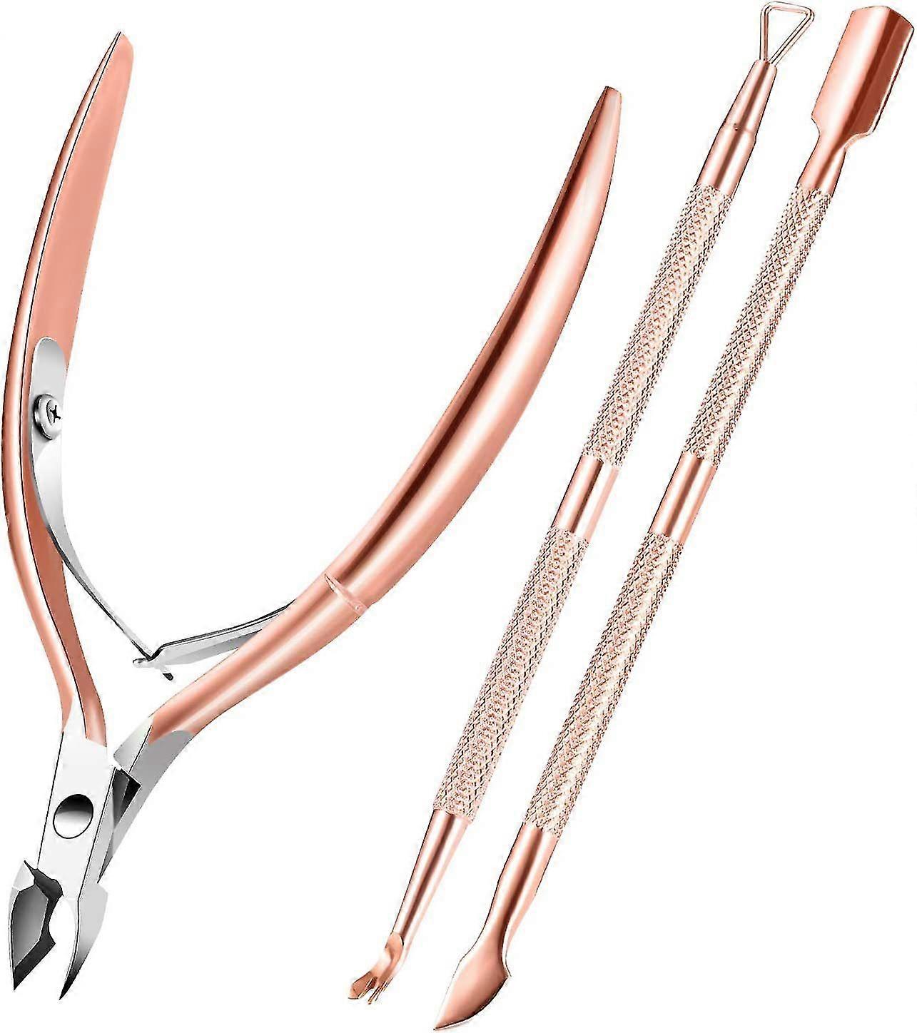 3pcs Nail Cuticle Set Nipper Scissor Rose Gold Tweezer Clipper Dead Skin Remover Scissor Plier Pusher Nail Art Beauty Tool