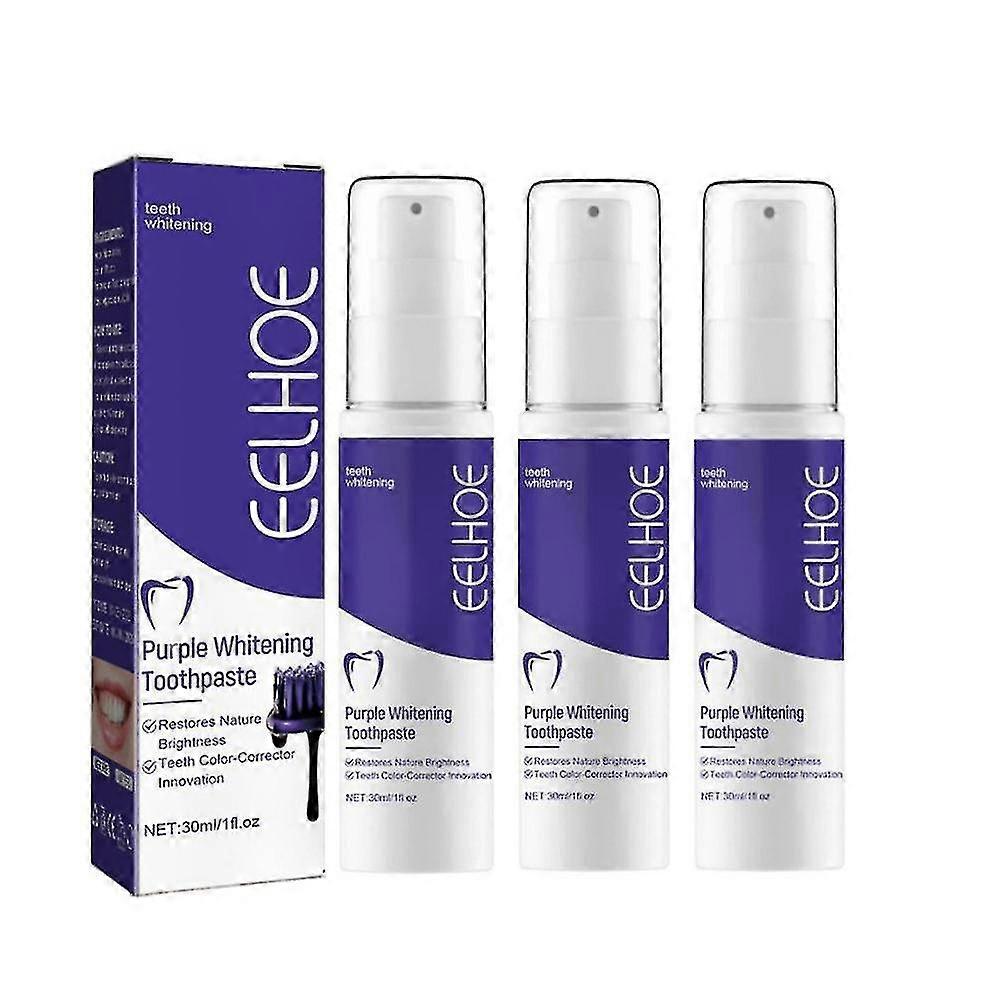 3pcs Purple Whitening Toothpaste Corrector Teeth Whitening Tooth Stain Removal Purple 30ml
