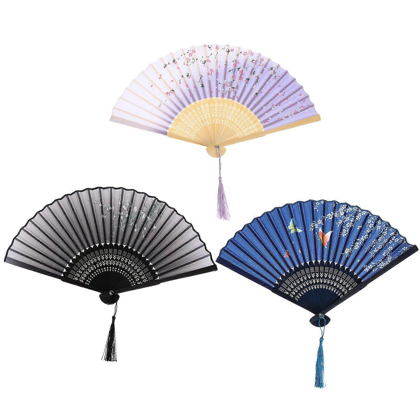 3pcs Hand Held Folding Fans Antique Folding Fans Bamboo Fans Dance Props