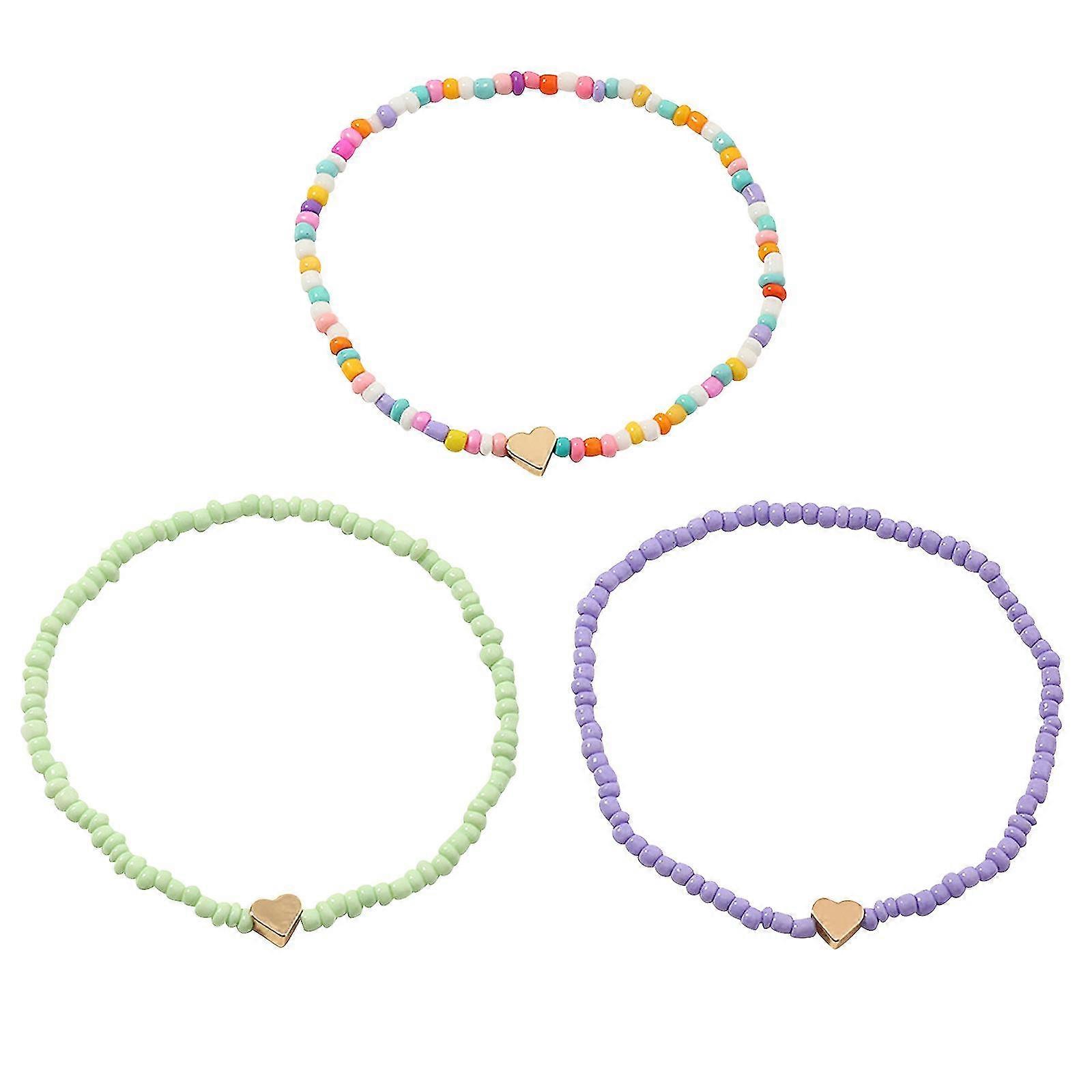 3pcs Fashion Love Foot Ornament Women Beach Style Rice Bead Anklet Set