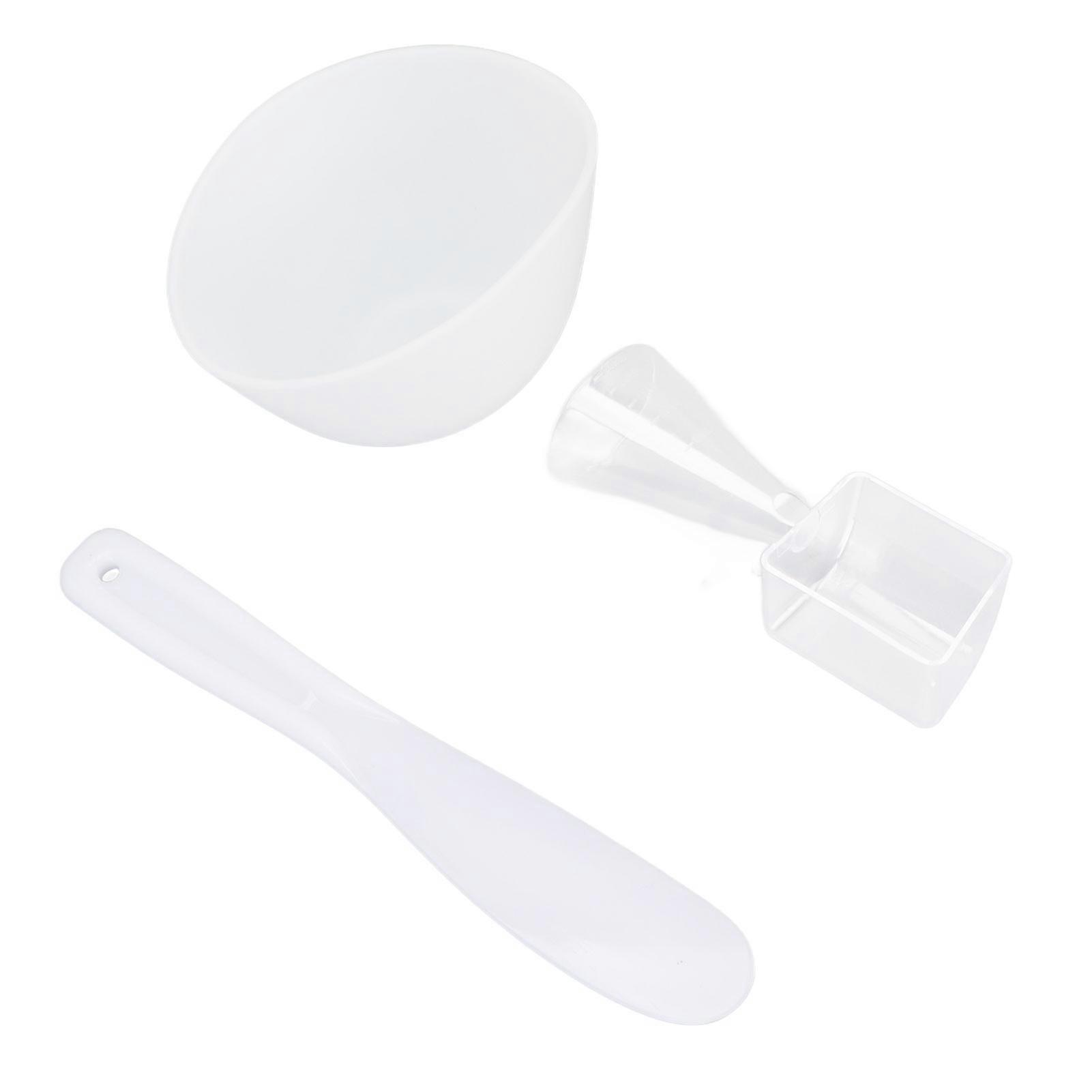 3pcs Face Mask Bowl Spatula Set Measuring Spoon Soft Silicone Washable Reusable Skin Care Clay Mask Applicator White