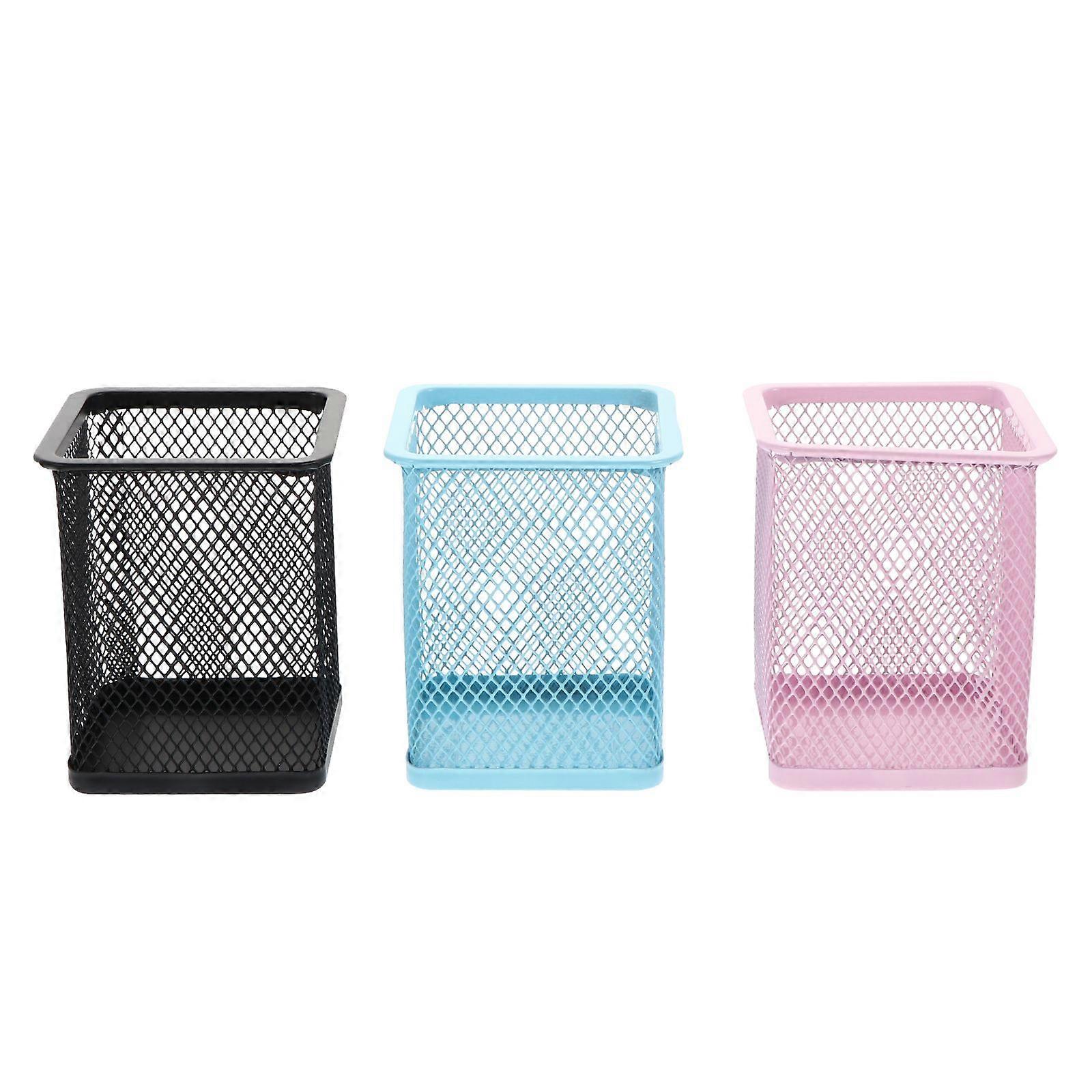 3pcs Pen Pot Cuboid Iron Mesh Pencil Holder Desktop Pencil Container for Office