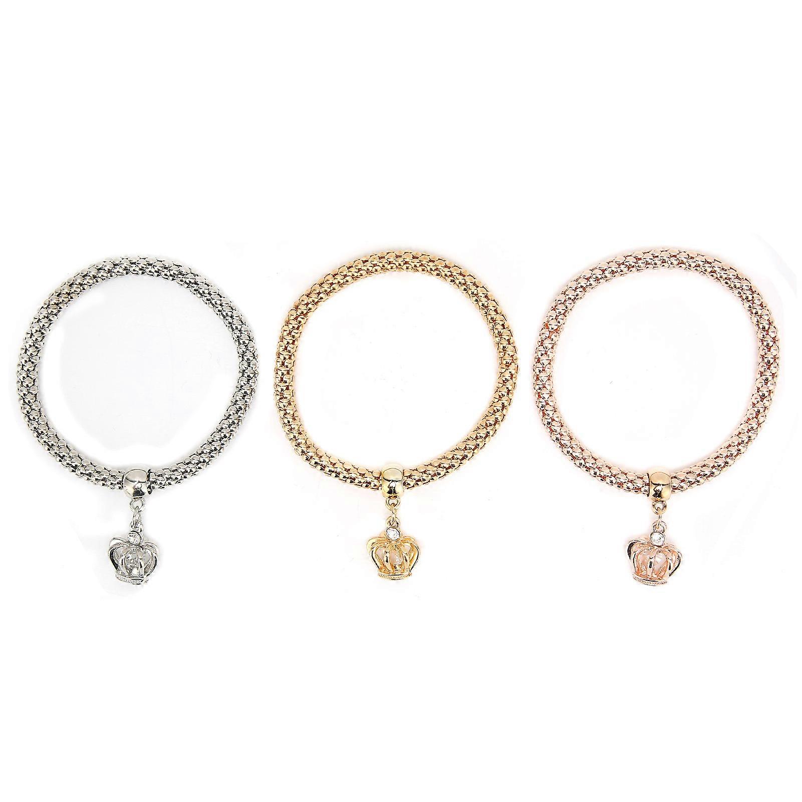 3pcs Popcorn Bracelets Alloy Elastic Charm Bracelets 3 Colors Couple Bracelet Set