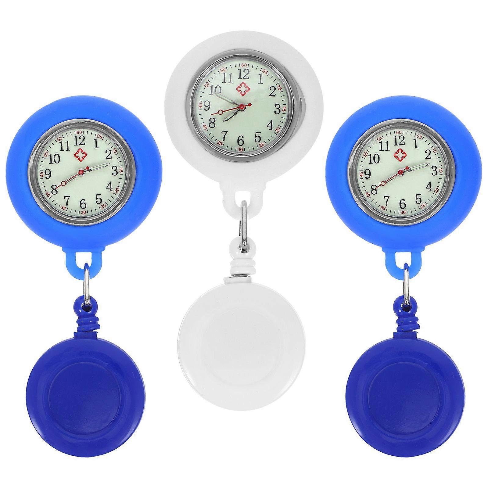 3pcs Portable Silicone Nurse Watch Doctor Hanging Pocket Watch Stretchable Pocket Watch Round Watch(Black, Light Blue and White, 1pc for Each Color)