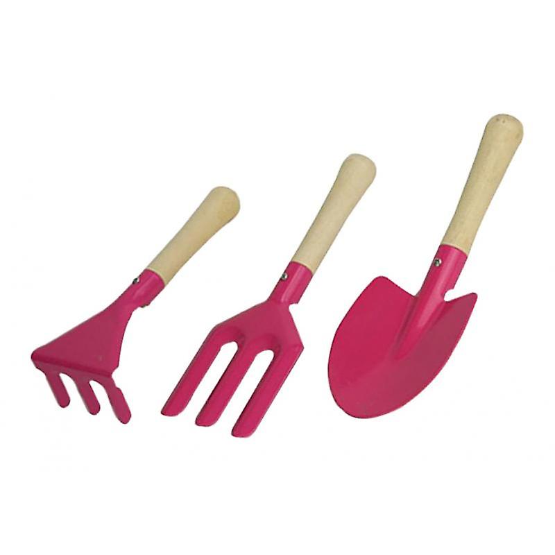 3pcs Mini Metal Rake Shovel Fork Set Kids Beach Sandbox Toy Pink