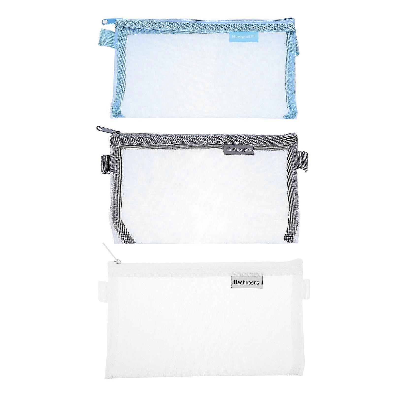 3pcs Mesh Pen Bags Zippered File Pockets Useful Test Pen Storage Bags (assorted Color)
