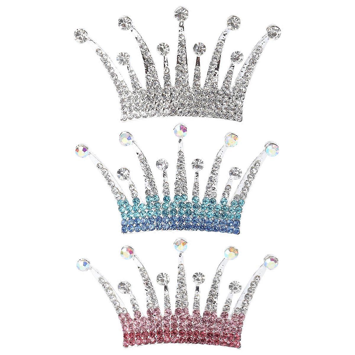 3PCS Little Girl Crown-shaped Hair Combs Colorful Rhinestone Inlaid Headdress Birthday Hair Clips Delicate Children Hair Accessories for Girl (Silver