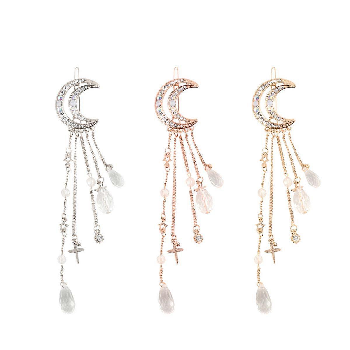 3pcs Women's Hollow out Hair Clip Geometric Moon Shape Metal Hairpins Tassel Clamps Barrettes Bobby Pin Headwear Hair Accessories (Golden + Rose Gold