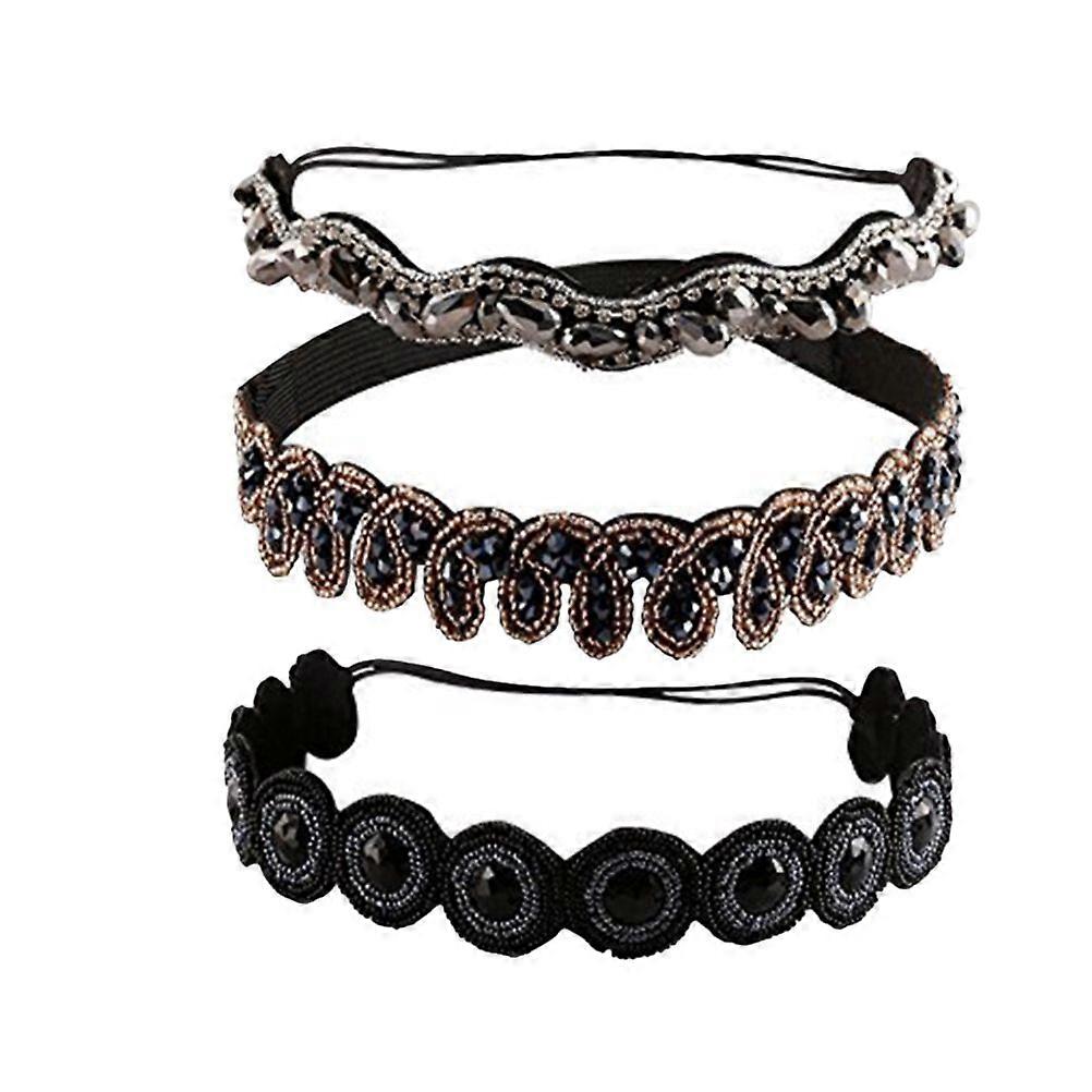 3pcs Retro Crystal Hair Band Rhinestone Headbands Handcraft Beaded Headwrap Hair Accessories for Women Girls (Black, Grey, Blue)