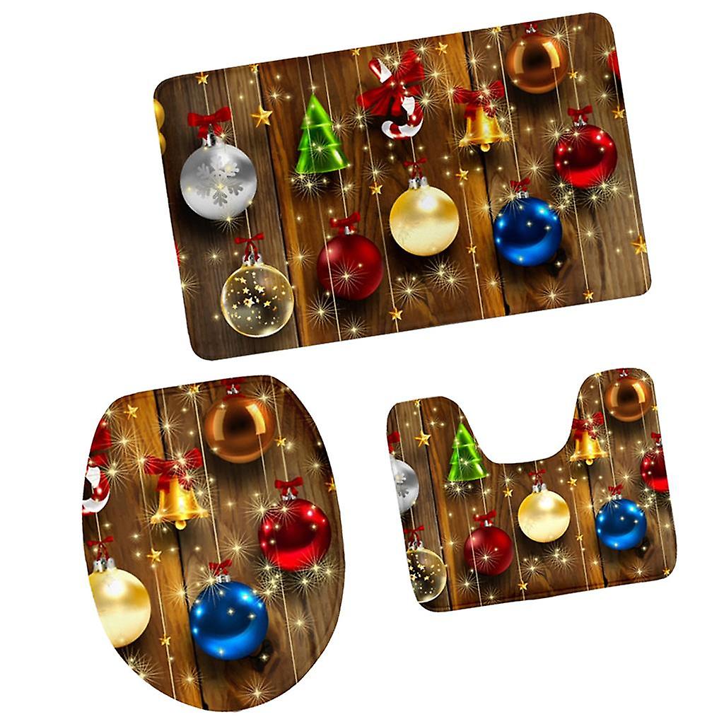3pcs Toilet Seat Cover + Bath Mat + Pedestal Rug Xmas Home / Party Decor I