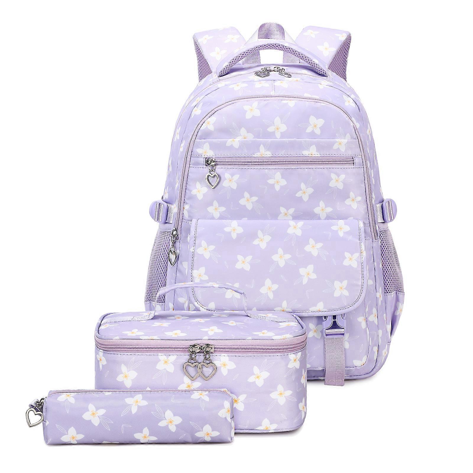3pcs Comfortable School Bag and Lunch Bag Pencil Case Set for Student Large Capacity Backpack Rucksacks Casual Daypacks Purple