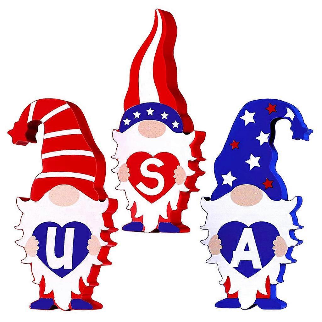 3pcs Patriotic Gnome Wooden Sign Independence Day Decoration Freestanding Table Signs Home Decor