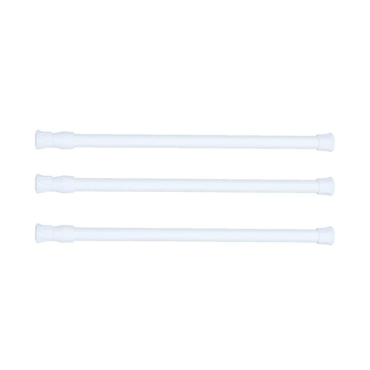 3pcs Extendable Cupboard Bars Tensions Rod Spring Curtain Rod Adjustable Width 11.8-20 Inches (White)