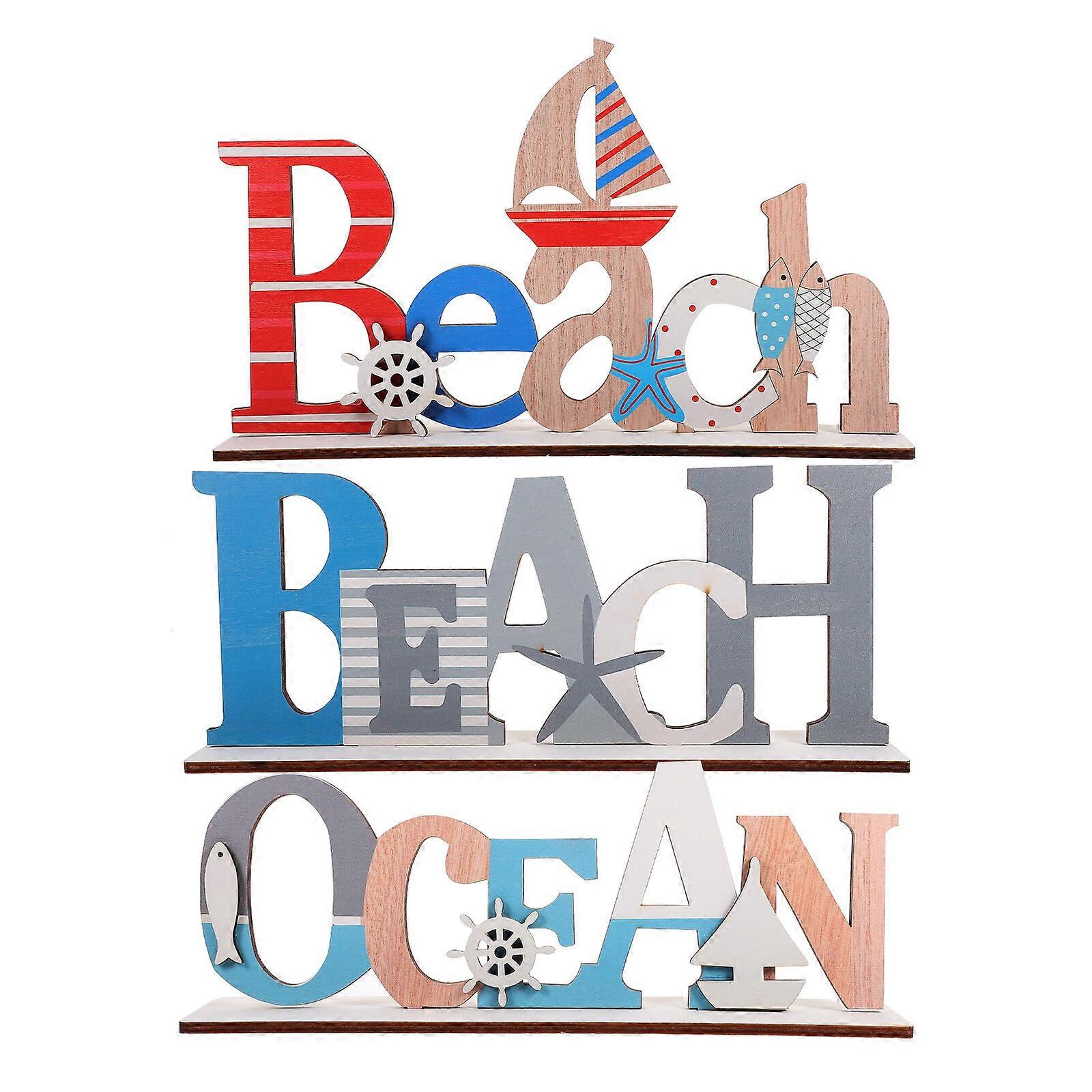 3pcs Wooden Ocean Table Sign Decorations Shelves Wooden Signs Beach Theme Letter Plaque