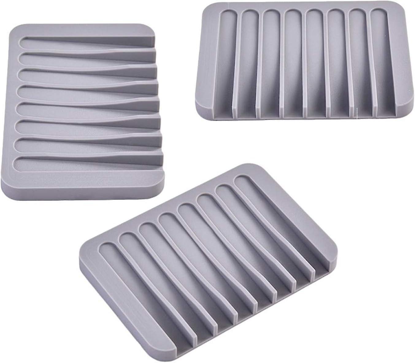3pcs Anti-Slip Silicone Soap Dish with Waterfall Drain to Keep Dry Silicone Soap Dish