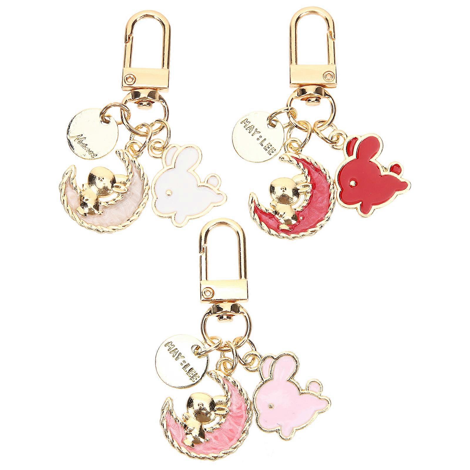 3PCS Cartoon Rabbit Keychains Cute Bunny Charm Keyrings Lightweight Bag Hanging Decor Red Pink White