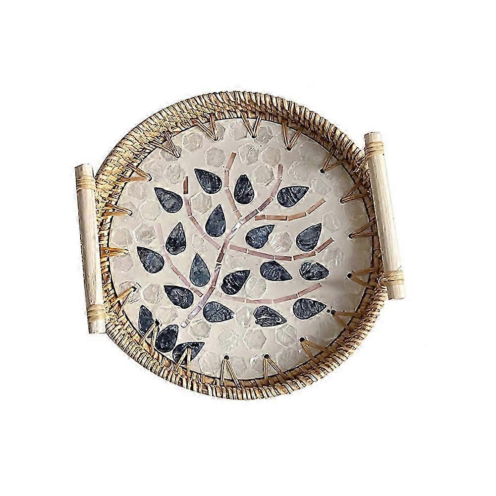 3pcs Rattan Discoid Shell Container Tray Woven Tray, Double Handle Handwoven Round Basket for Cracker Dinner Parties Coffee Table Breakfast