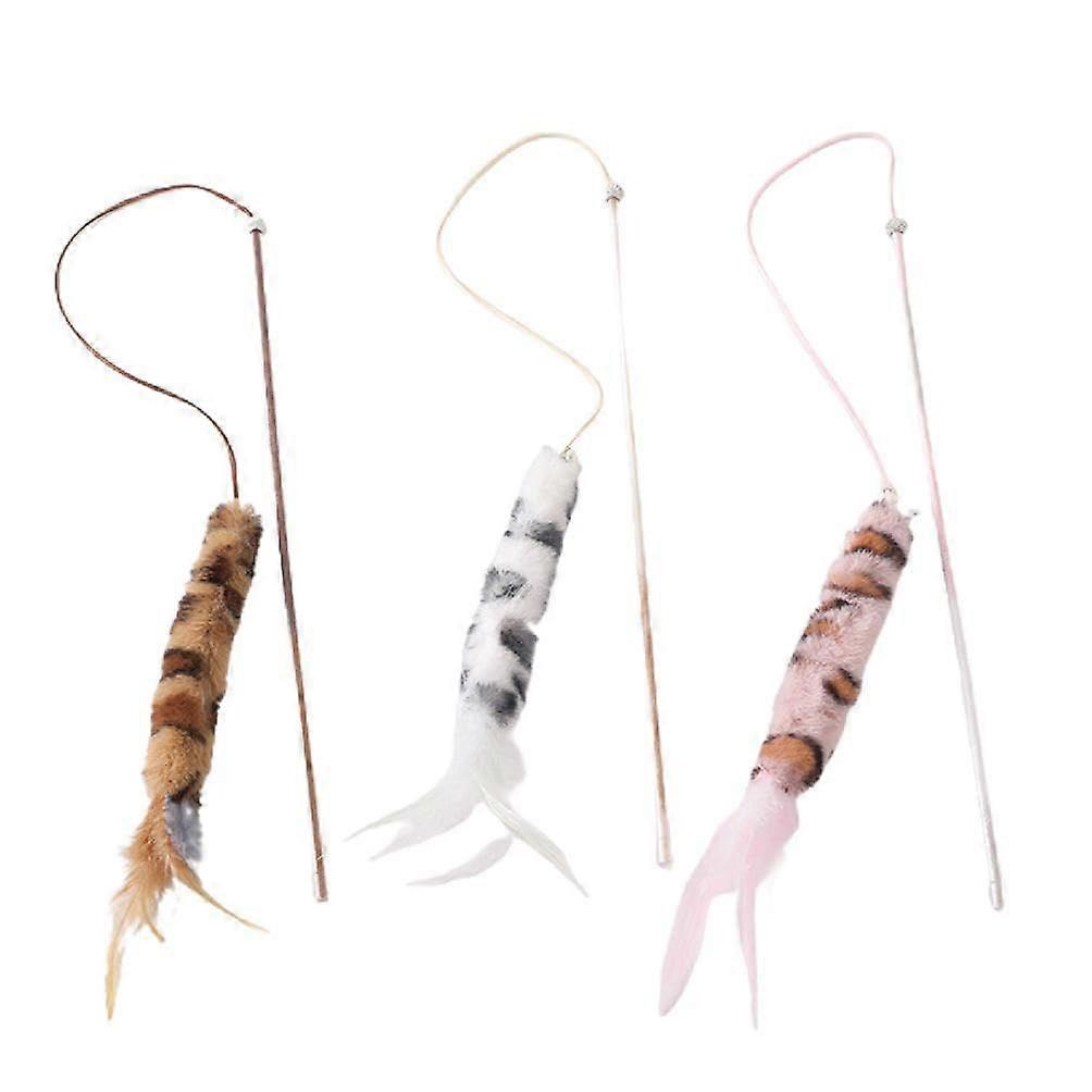 3pcs Beautiful Cat Stick Toy Indoor Kitten Cat Furry Leopard Print Toy Long Stick Cat and Kitten Funny Toy Cat Tease Toy Accessories