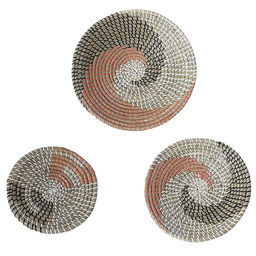 3pcs Boho Woven Wall Basket Decor Handmade Seagrass Hanging Decorative Tray Bowl Fruit Dessert Plate