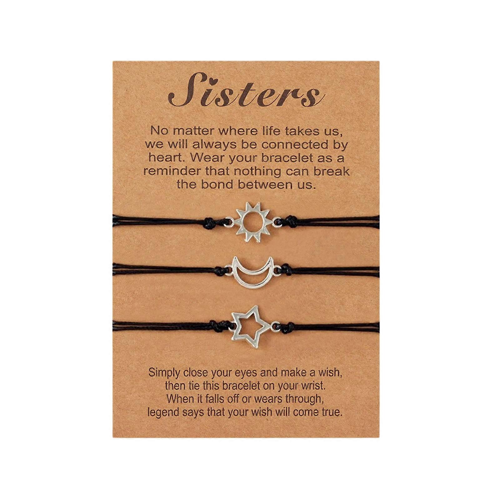 3pcs Adjustable Sun Moon Star Matching Bracelets Handmade Woven Bracelet Friendship Jewelry for Best-Friend Sister Silver