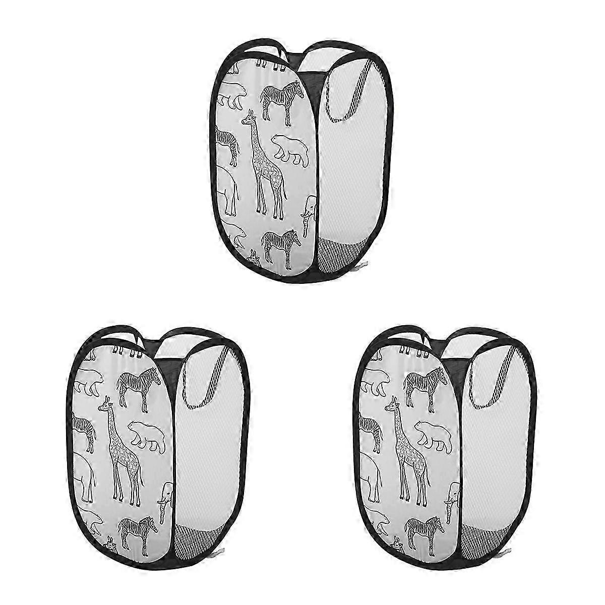 3pcs Cartoon Foldable Laundry Basket Mesh Toy Storage Bin for Children 30x30x48cm Black