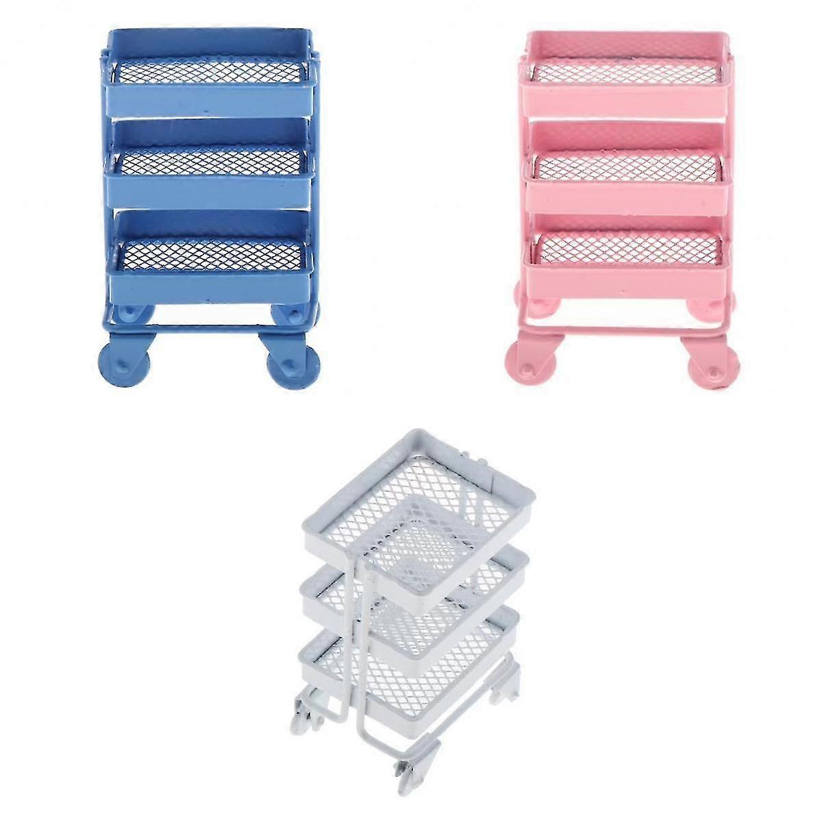 3pcs 1/12 Metal Storage Shelf with Wheels Doll House Furniture Accessory
