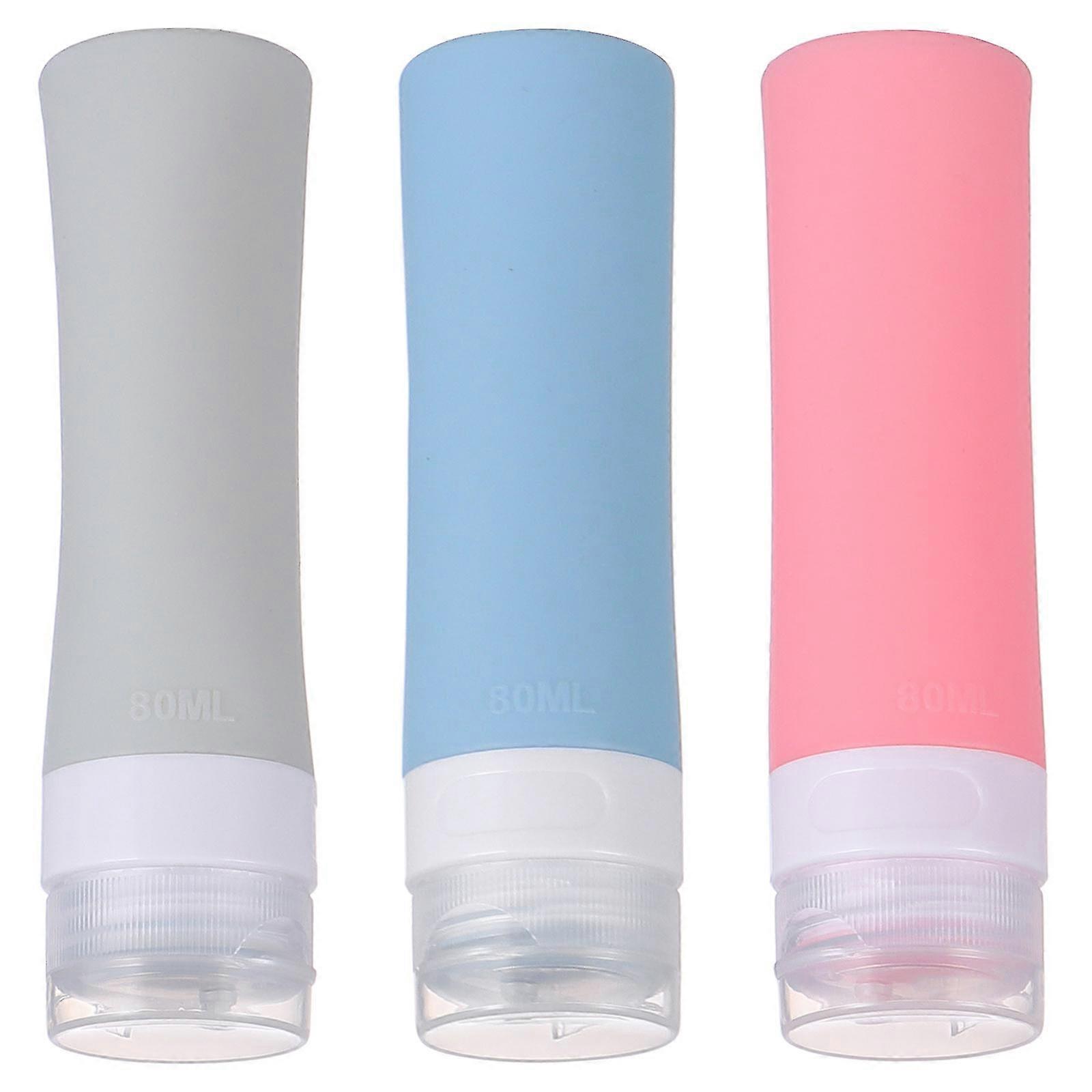 Description Made of silicone, which are soft, odorless, sturdy and lightweight. Leak proof design protects your clothes and bags from the liquid leakage or spillage. The bottle allows you to squeeze it fully until the last drop is used up, no waste. Features -Color:Pink, blue, grey-Material: Silicone-Size:13.50X3.60X3.60cm/5.31X1.41X1.41in- An choice for hand sanitizer, lotion, facial cleanser, face cream, body lotion, sunscreen, shampoo, hair conditioner and more.-Widely mouth make these travel bottles are easy to fill and wash. convenient for use.-These reusable and refillable empty bottles is the best choice for you to travel or business trip.- 80ml,enough for holding your various toiletries, like essential oil, cosmetics and other liquids, can meet your short-term needs.-Easy to clean and not easy to break, safe and no harm to the liquids, reusable and can serve you for a lasting time.Packing list: 3 x Bottles