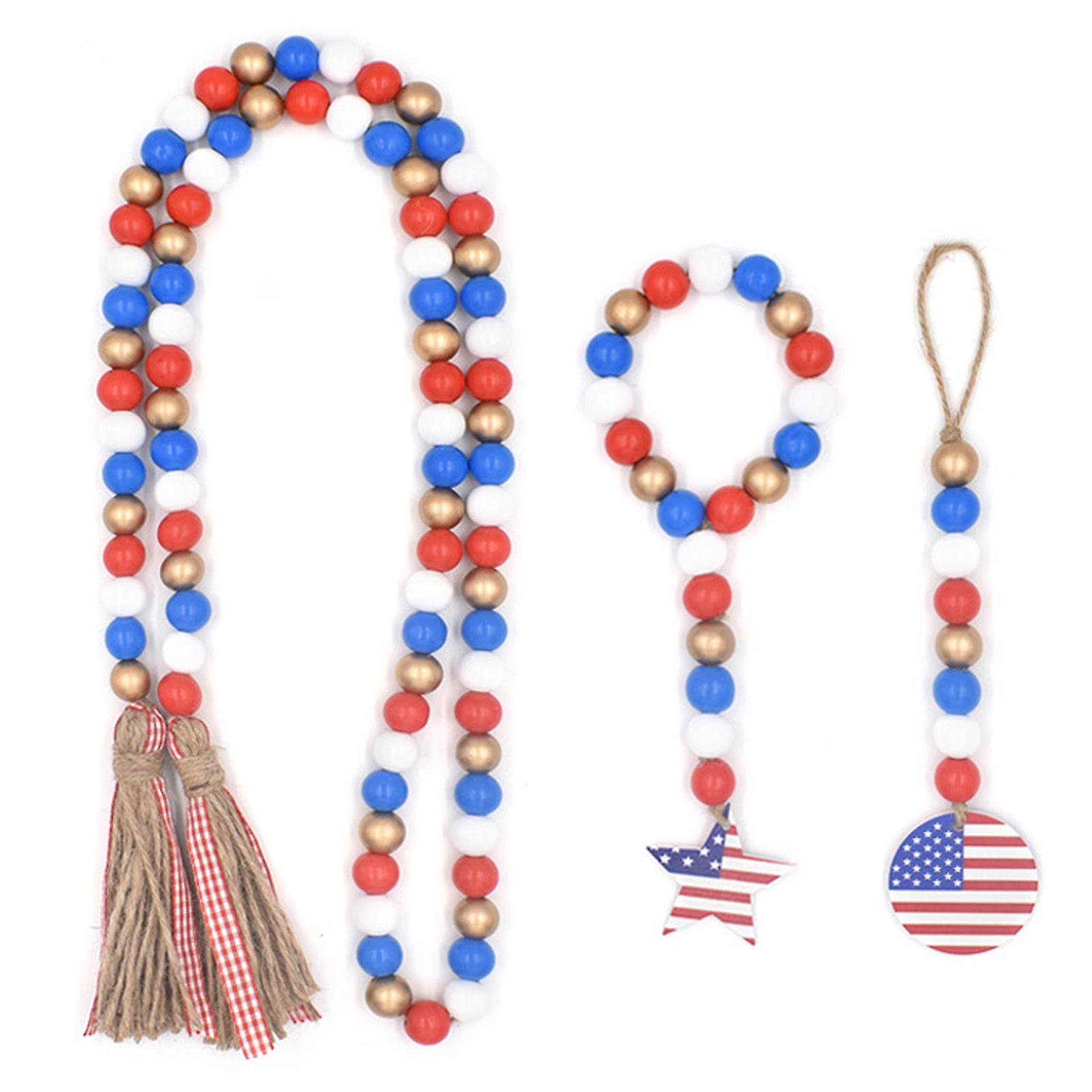 3 Pcs/Set Bead Tassel Independence Day Wooden Bead Farmhouse Wall Decoration Hanging Beads Rosary USA Flag Dining Table United States Rope