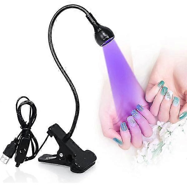 3w LED Nail Manicure Dryer 395nm Curing Light with Black Gooseneck and Clip for Gel Nails (Black)