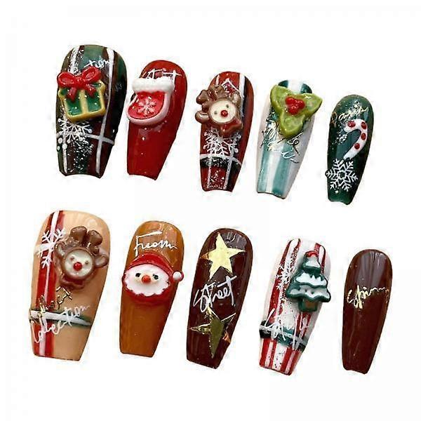 Description: 【Christmas Wearable Nail Art】: This Christmas  wearable nail art is for adding a festive touch to your holiday look 【Material】: Made from ABS material, these press on nails are designed to last, ensuring you can enjoy your beautiful manicure throughout the holiday season 【Gift】:  Christmas Press on Nails are great gift for women, girls on birthday, holiday  【Easy to Use & Remove】: Christmas False Nails are not only easy to wear but also removable making them convenient for use. They are suitable for all your Christmas nail dressing needs 【Package Includes】: Each package comes with ten pieces of festival holiday nails ensuring you have enough pieces for a complete manicure Size Chart:M:Thumb 1.6cm/0.63inch, Index finger 1.2cm/0.47inch,Middle 1.3cm/0.51inch,Rings finger ,1.2cm/0.47inch,Little finger  0.9cm/0.35inch Package Includes: 1 Set/ 10 Press on Nails (3 Pack) Note: Please allow slightly errors due to manual measurement and different monitors.