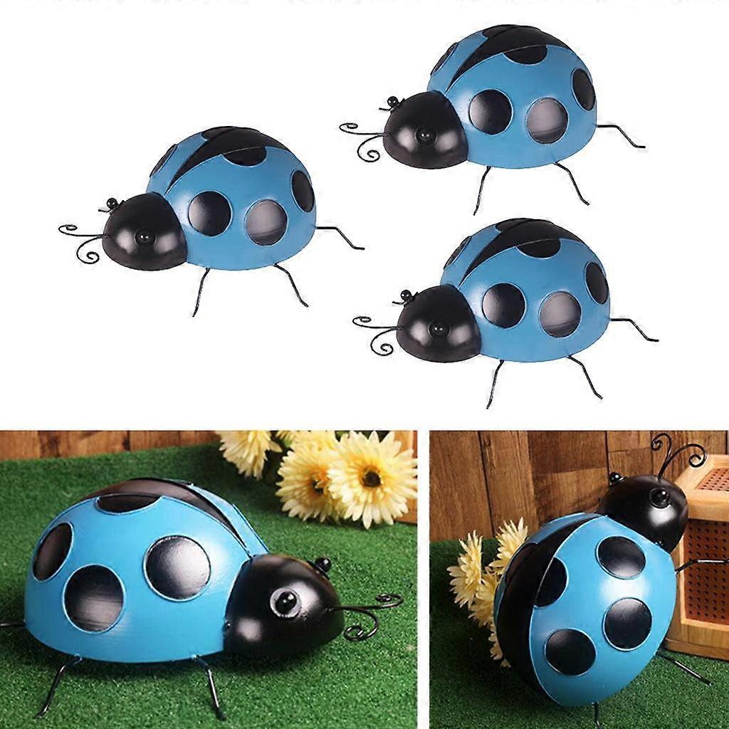 3x Mini Metal Ladybug Fence Hanger Wall Hanging Outdoor Garden Decor Blue