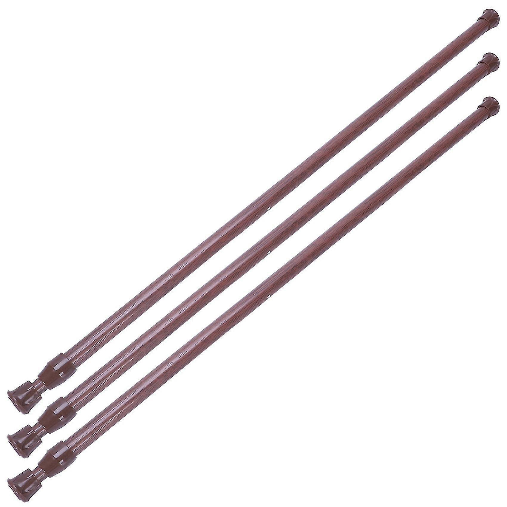 3x Extendable Telescopic Spring Loaded Net Voile Tension Curtain Rail Pole Rods,55-90cm,wood Color