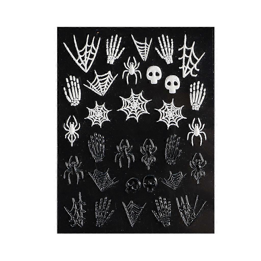 3x/Set Halloween Nail Art Stickers 5D Stereo Relief Nail Decals Skull-Spider Web Design Stickers for DIY Nail Decoration