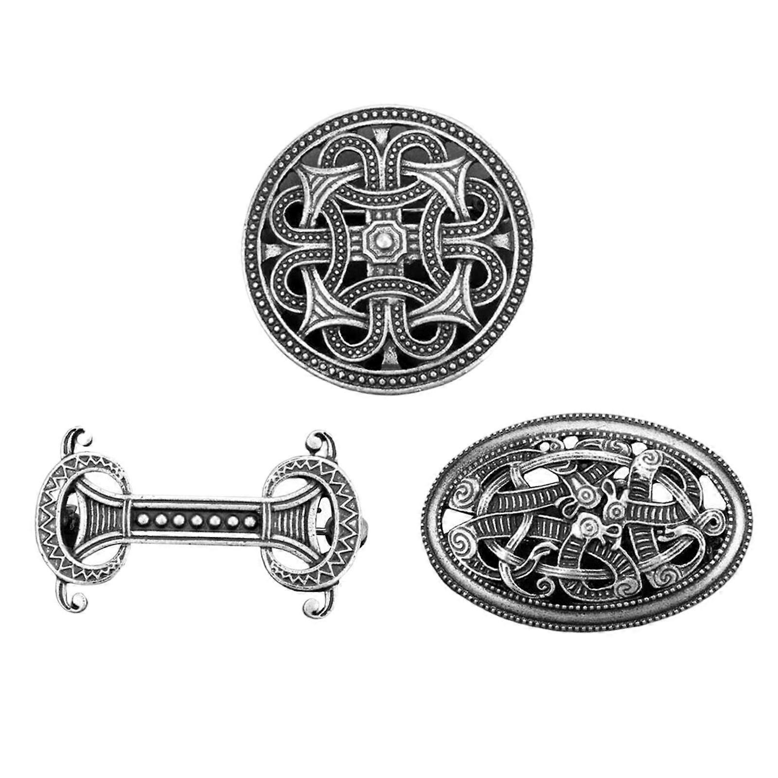3x Medieval Symbol Brooch Oval Shawl Brooch