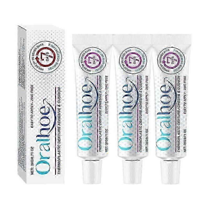 Name: Denture Fixing Adhesive Specifications: 20g Efficacy: Firmly Bonded, Providing A Light But Firm Bonding Effect Without Excessive Pressure Features: 1. Mild Ingredients To Reduce The Risk Of Allergic Reactions 2. Firmly Bonded, Providing A Light But Firm Bonding Effect Without Excessive Pressure 3. Soluble In Warm Water, Easy To Clean And Replace, No Residue 4. Enhance Adhesion And Prevent Food Residue From Entering Under The Denture 5. Able To Firmly Fix The Dentures On The Gums, Providing A Comfortable Experience For The Dentures Wearer 6. Can Relieve Gum Pain And Irritation Caused By Wearing Dentures, Make You More Comfortable Package Included: 3pcs*(Fixing Adhesive)